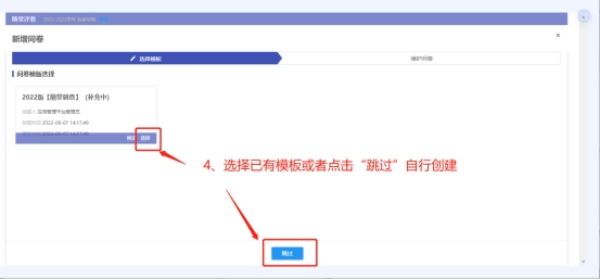 新建问卷时,可以选择已有模板进行创建,也可以点“跳过”,自行设置问卷指标。