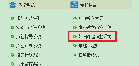 1.点击教务处主页 专题栏目“知网课程作业系统按纽