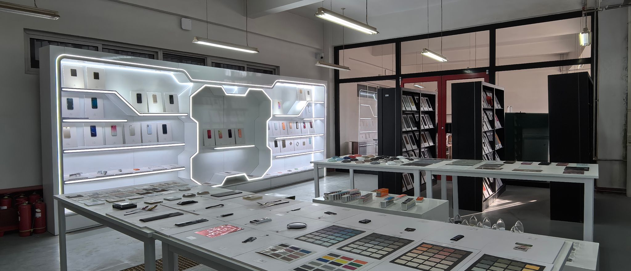CMF实验室是成人短视频 工业设计专业OBE教学实践基地,以“成人短视频 卓越工业设计工程师”为培养目标,面向工业设计工程硕士研究生开展实践教学活动,总面积120平米。主要实践活动包括:色彩研究与流行色分析、材料创新研究与实验、表面处理技术双线库库构建与表面处理技法实践。
